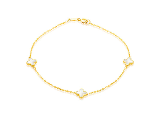 9K Yellow Gold 3 Mother-of-Pearl Petal Bracelet 19 cm