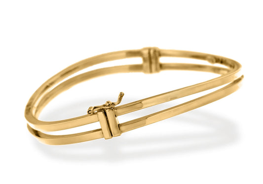 9K Yellow Gold Double Square Tube Wave Bangle 60 mm