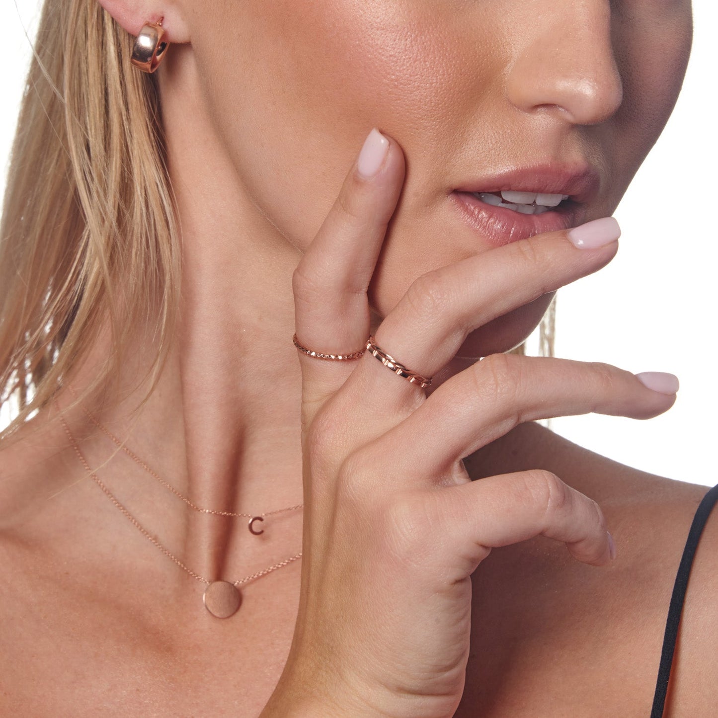 This 9K Rose Gold Solid Diamond-Cut Stacker Ring is the true pick of the bunch. Pair this with a matching gold jewellery set for a stylish and contemporary look.