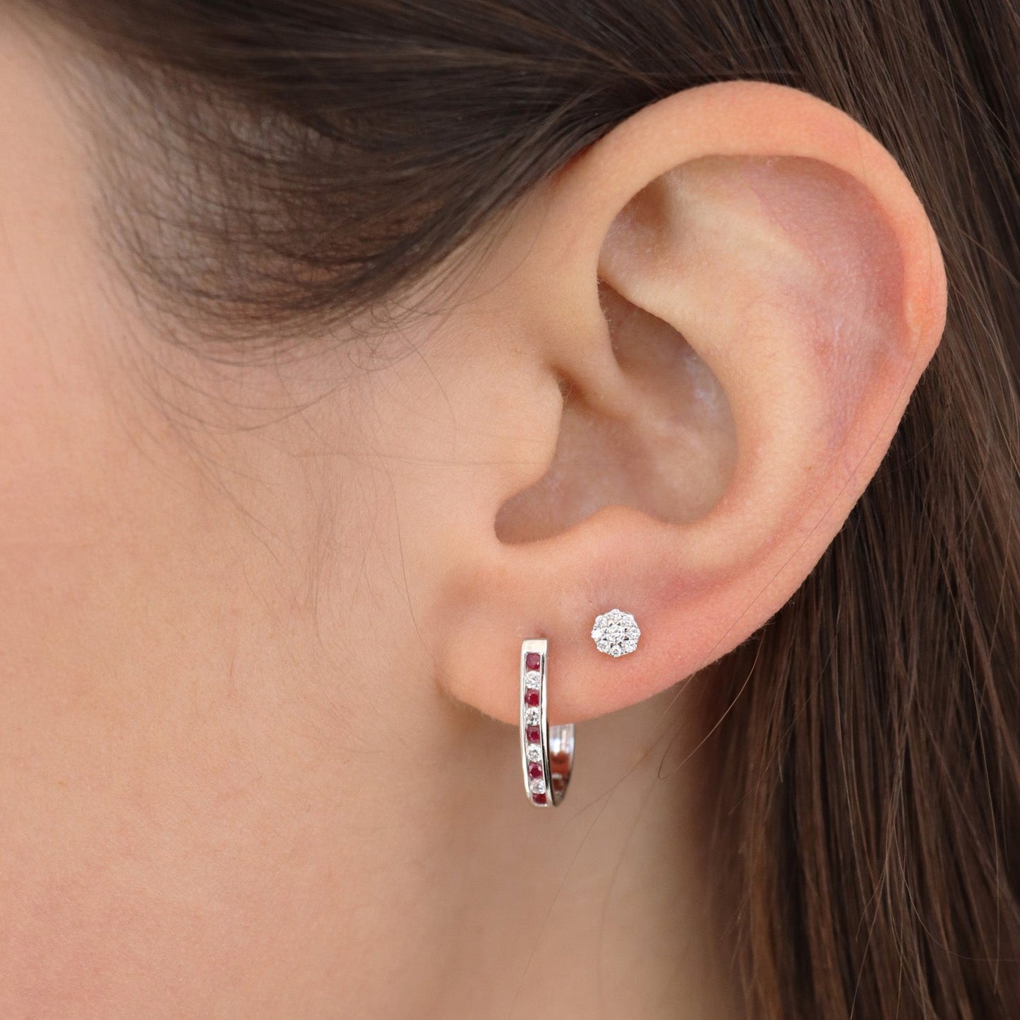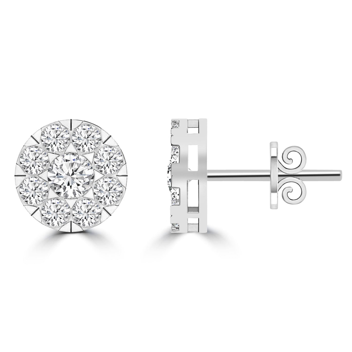 Cluster Diamond Stud Earrings with 0.10ct Diamonds in 9K White Gold - 9WECLUS10GH