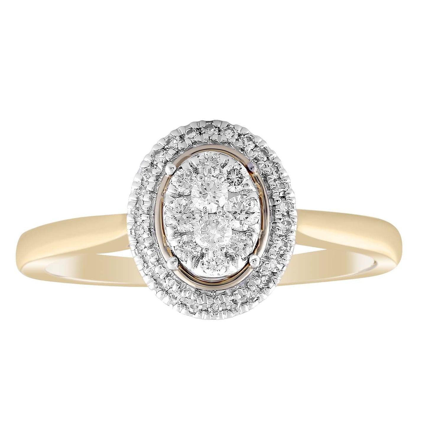 Pop the question with this stunning diamond cluster engagement ring featuring 36 diamonds, a total diamond weight of 0.25 carats set in 9K Yellow Gold.